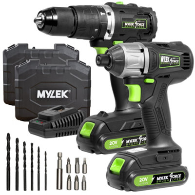 Mylek 20V Liion Cordless Drill & Impact Driver Brushless Combo Set